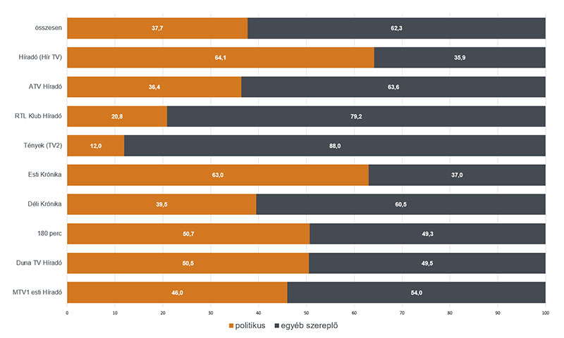 A politikusok szerepléseinek aránya más szereplőkével összevetve